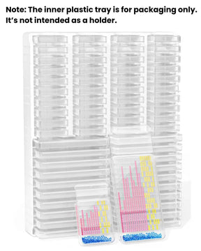 Platzieren Sie einfach den beigefügten farblich gekennzeichneten Aufkleber auf jedem Tablett. So können Sie Ihre Diamanten auf einen Blick identifizieren, selbst wenn die Tabletts gestapelt sind, und bleiben organisiert, um problemlos zwischen den Farben wechseln zu können, ohne Verwechslungen. Dadurch wird Ihre Arbeitseffizienz verbessert.