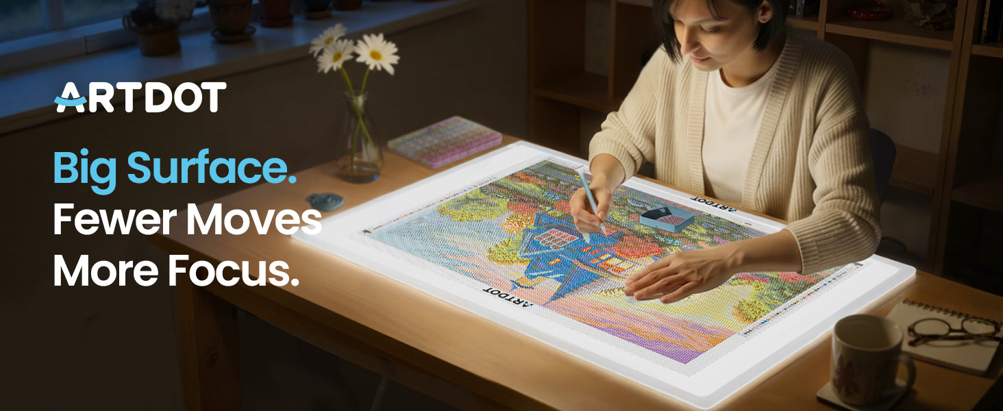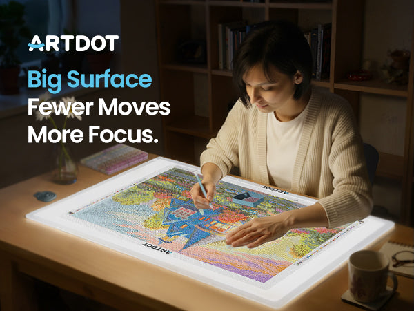 Artdot light pads have 4 different surfaces. For maximum convenience, we recommend the A1 and A2 sizes. These larger formats provide ample space for your projects, reduce the need for frequent canvas adjustments, and make working on bigger canvases easier than ever!
