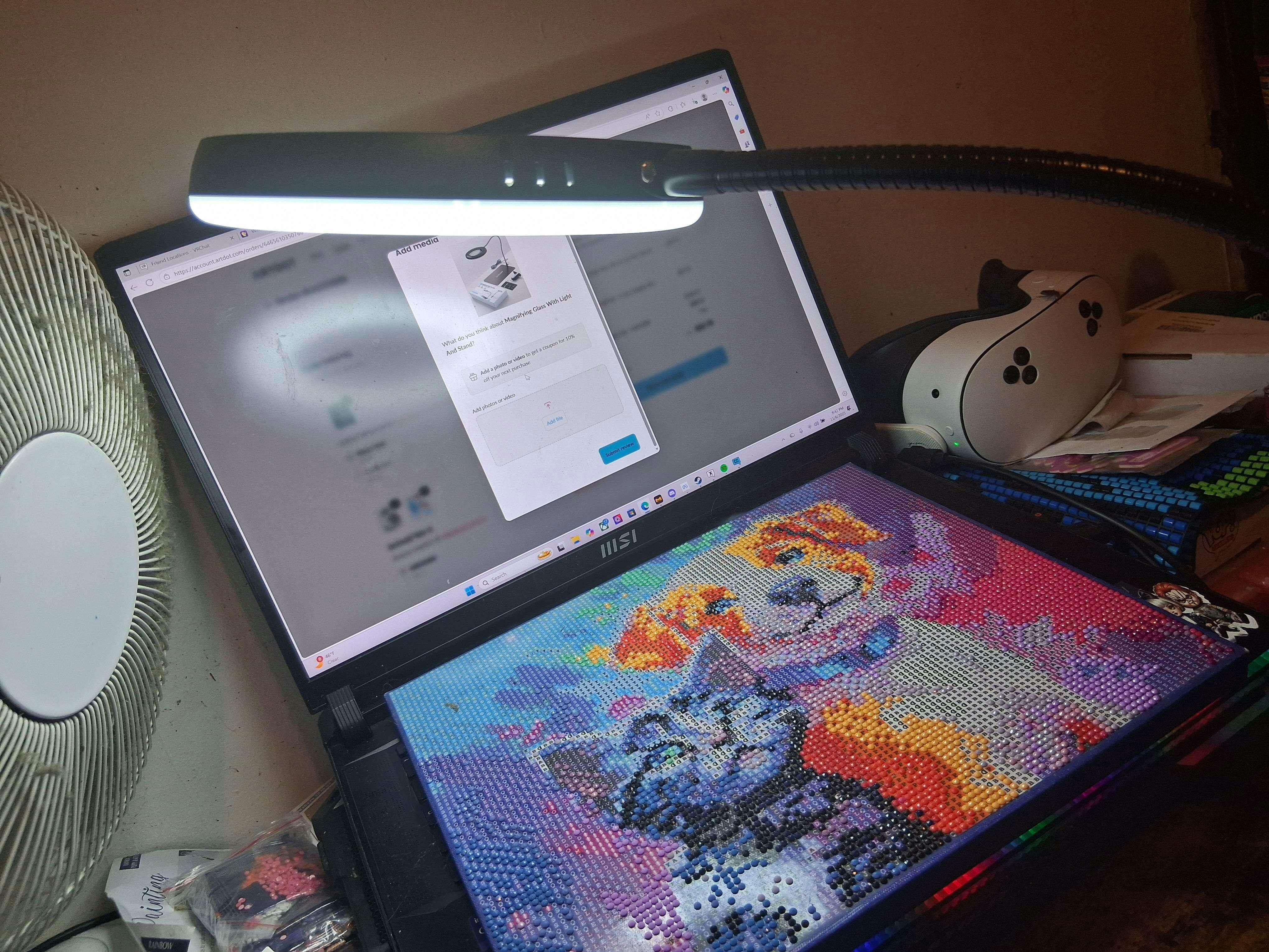 Purchasing the magnifying glass with light stand has been a tremendous help with my diamond painting❣️🫶🏽💜🥰 Thank you Artdot for creating this unique idea💯🎉🥰💜