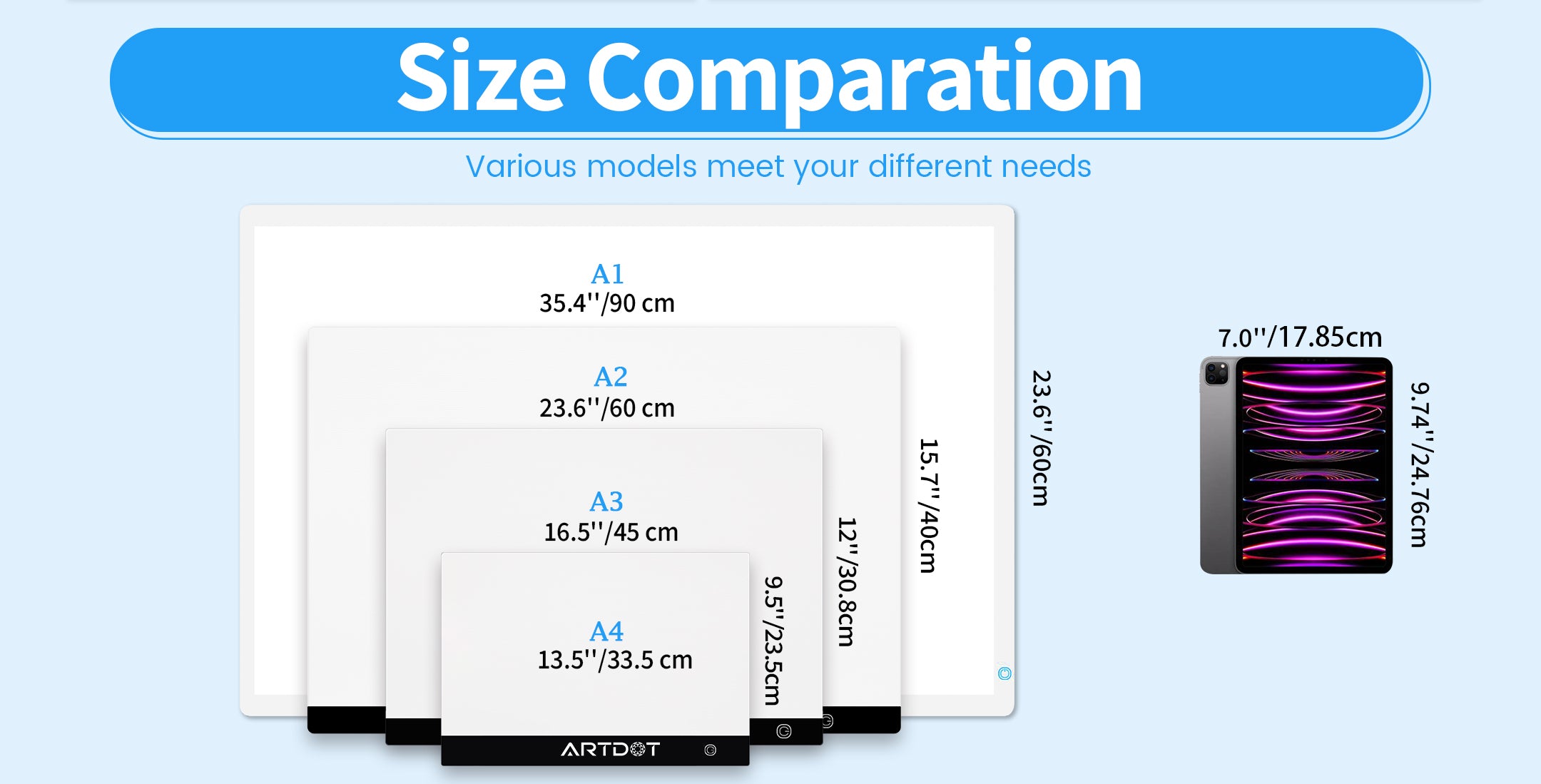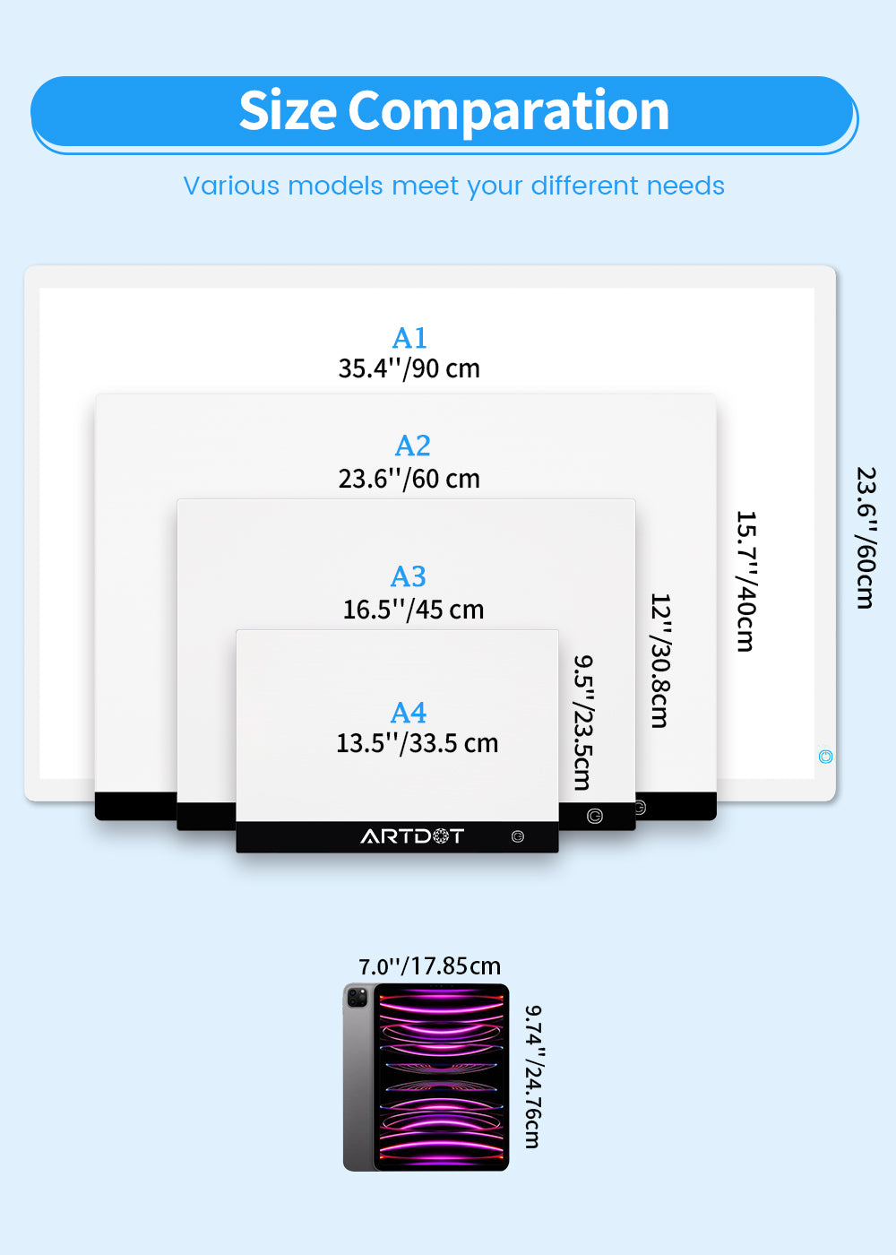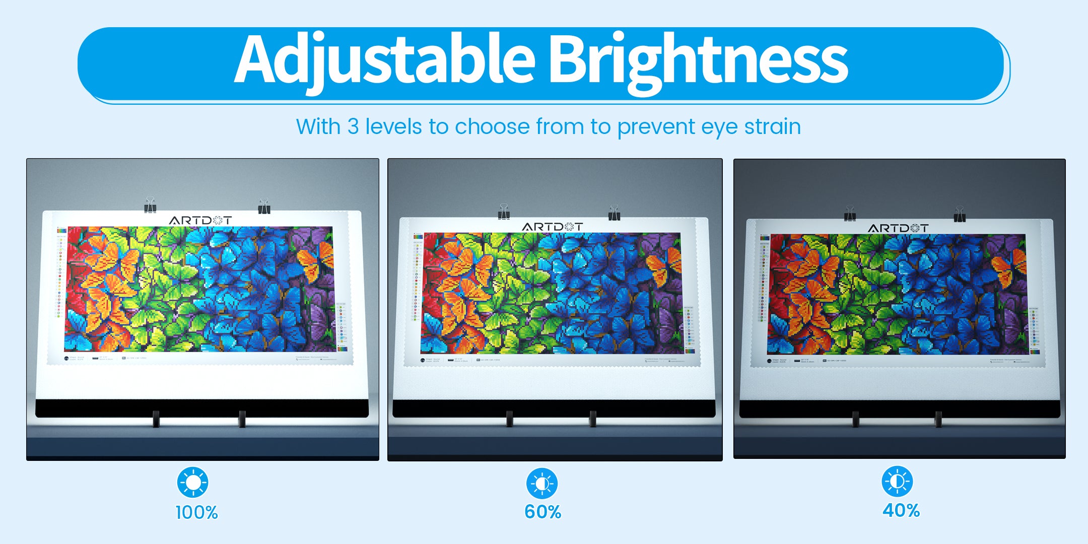 Almohadilla de luz ARTDOT tamaño A2, una herramienta imprescindible para los entusiastas de la pintura con diamantes. Este práctico dispositivo ilumina su lienzo desde abajo, mejorando la visibilidad de símbolos y detalles.