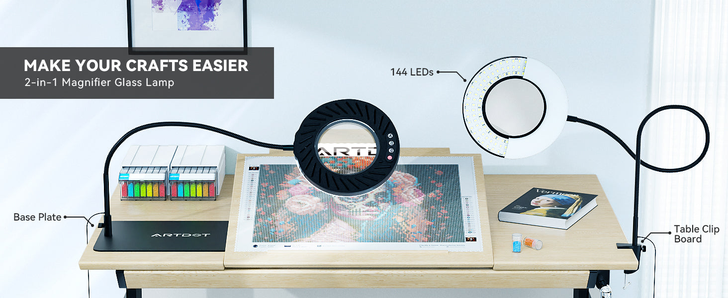 Comprar la lupa con soporte de luz ha sido de gran ayuda con mi pintura de diamantes❣️🫶🏽💜🥰 Gracias Artdot por crear este diseño único. idea💯🎉🥰💜