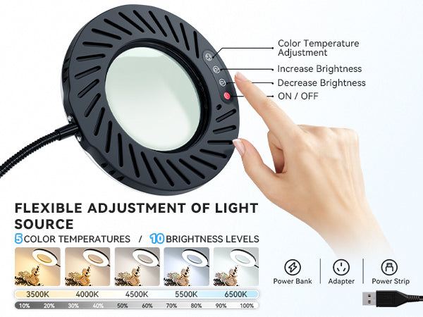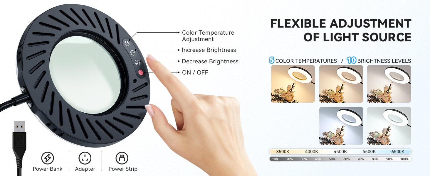 Esta lupa alimentada por USB le brinda una atmósfera inspiradora para concentrarse en su diseño artístico en un entorno ideal.