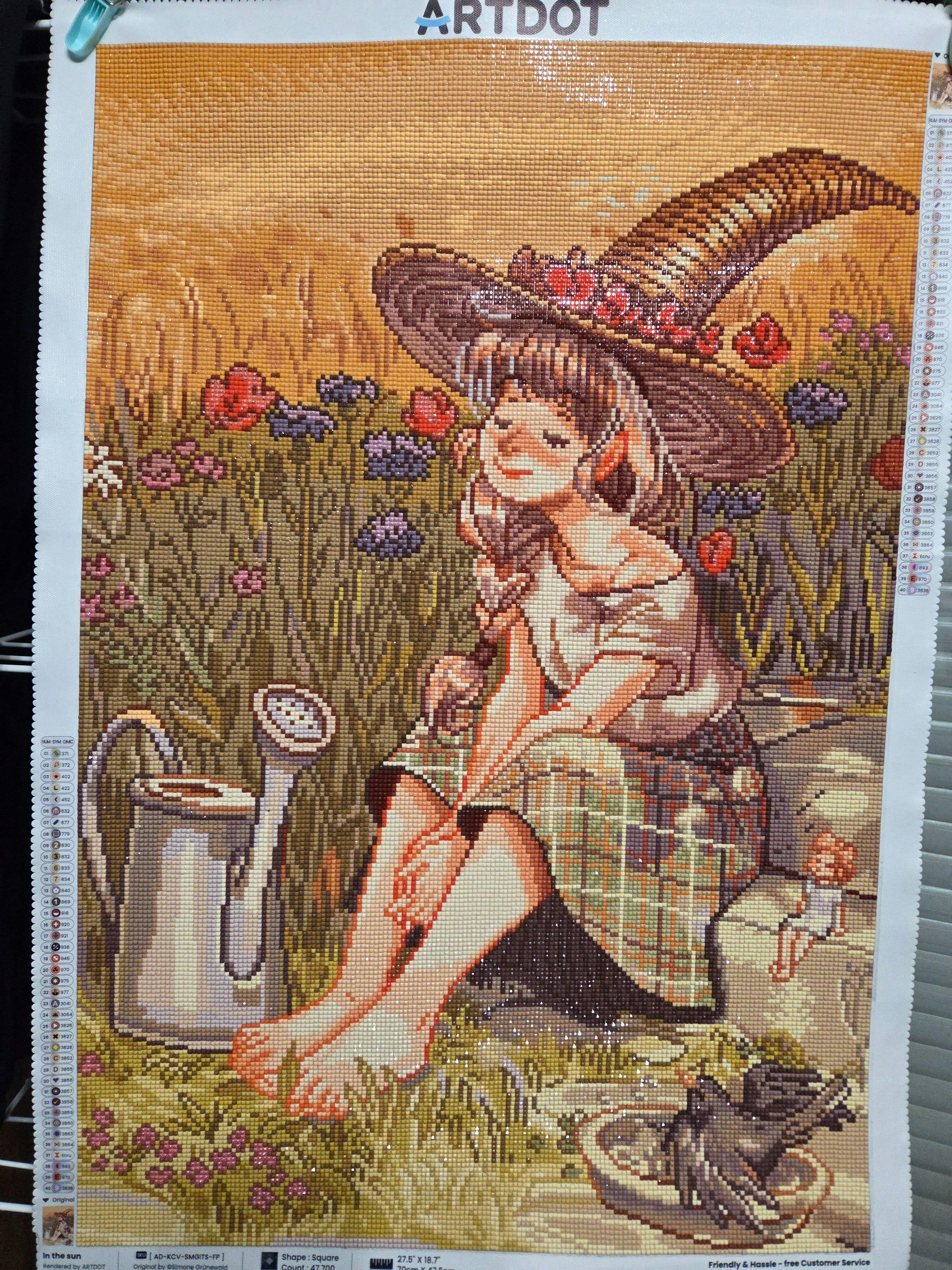 Le kit de peinture diamant Artdot est un ensemble d'art DIY abordable qui comprend une toile de haute qualité avec des symboles clairs, des outils (stylo, cire, plateau, etc.), des diamants, et une boîte tubulaire portable pour les tableaux. Il convient à tous les amateurs de peinture diamant.