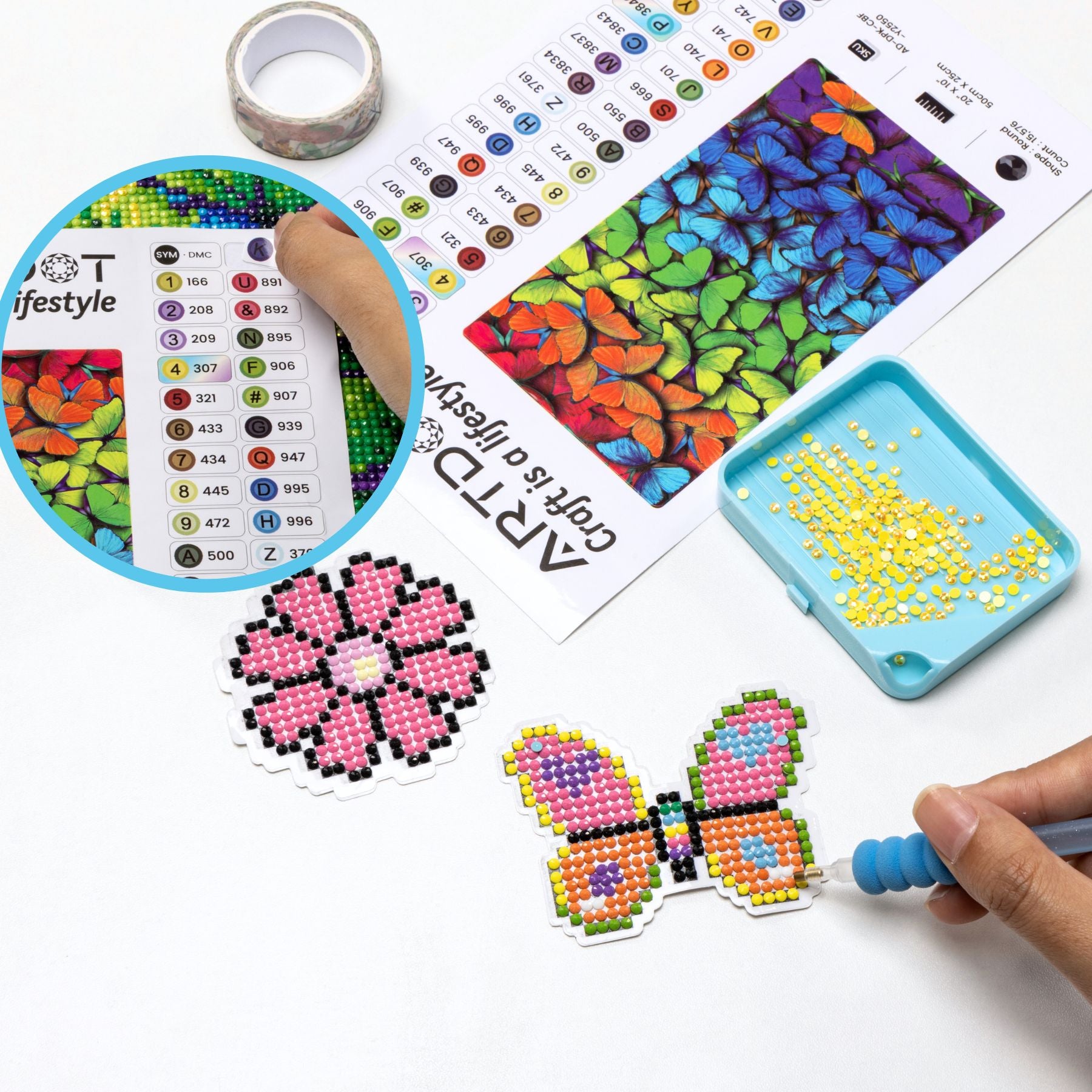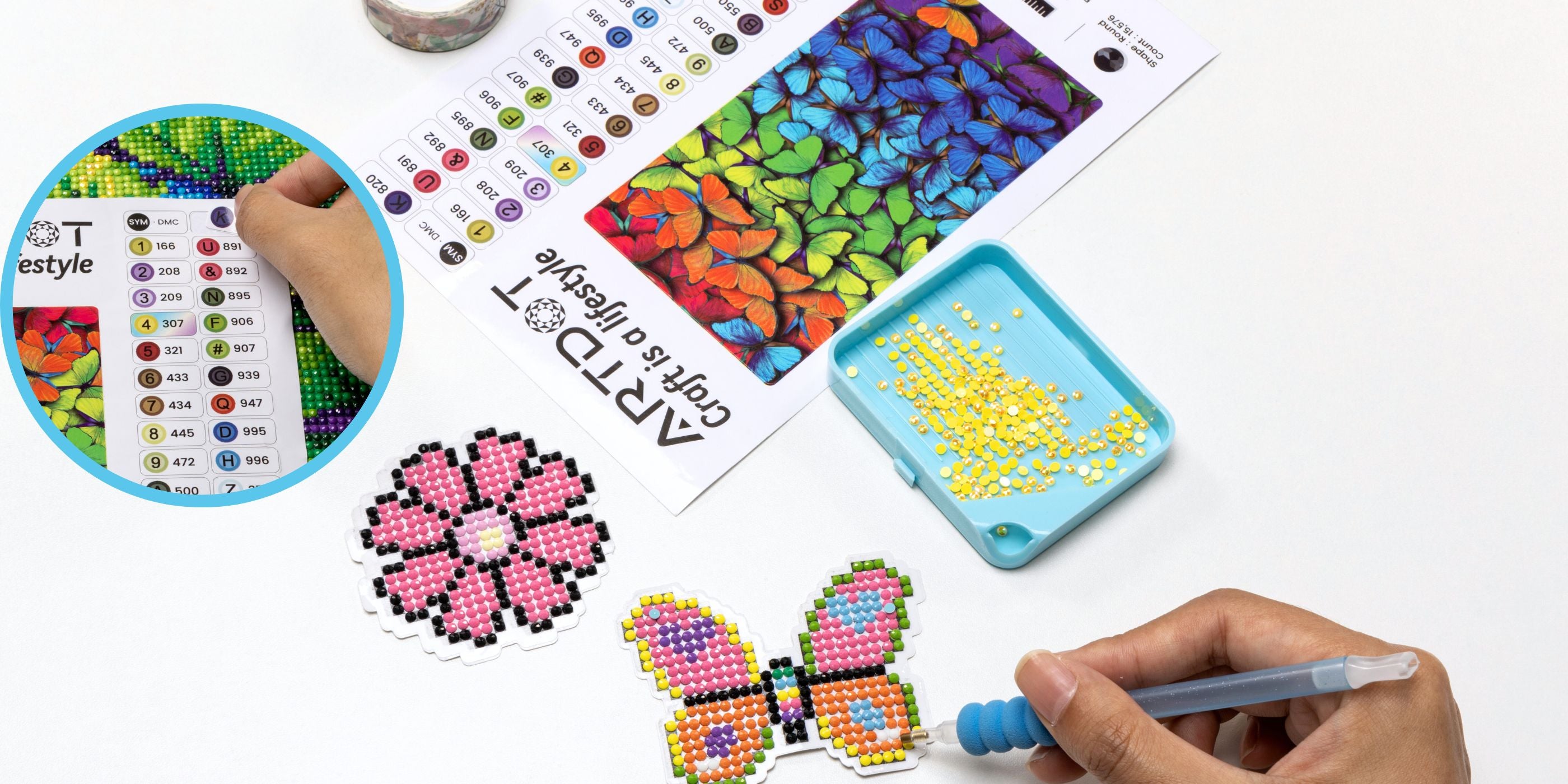 Say goodbye to tedious handwriting markers with our color-coded label stickers. Keep your masterpiece pristine by using the included washi tape to shield the unfinished area from dust. Managing leftover drills is simple with 2 Freestyle stickers, preventing wastage and maintaining order. Our exclusive ARTDOT Tray adds convenience, letting you combine trays effortlessly if you purchase multiple kits.