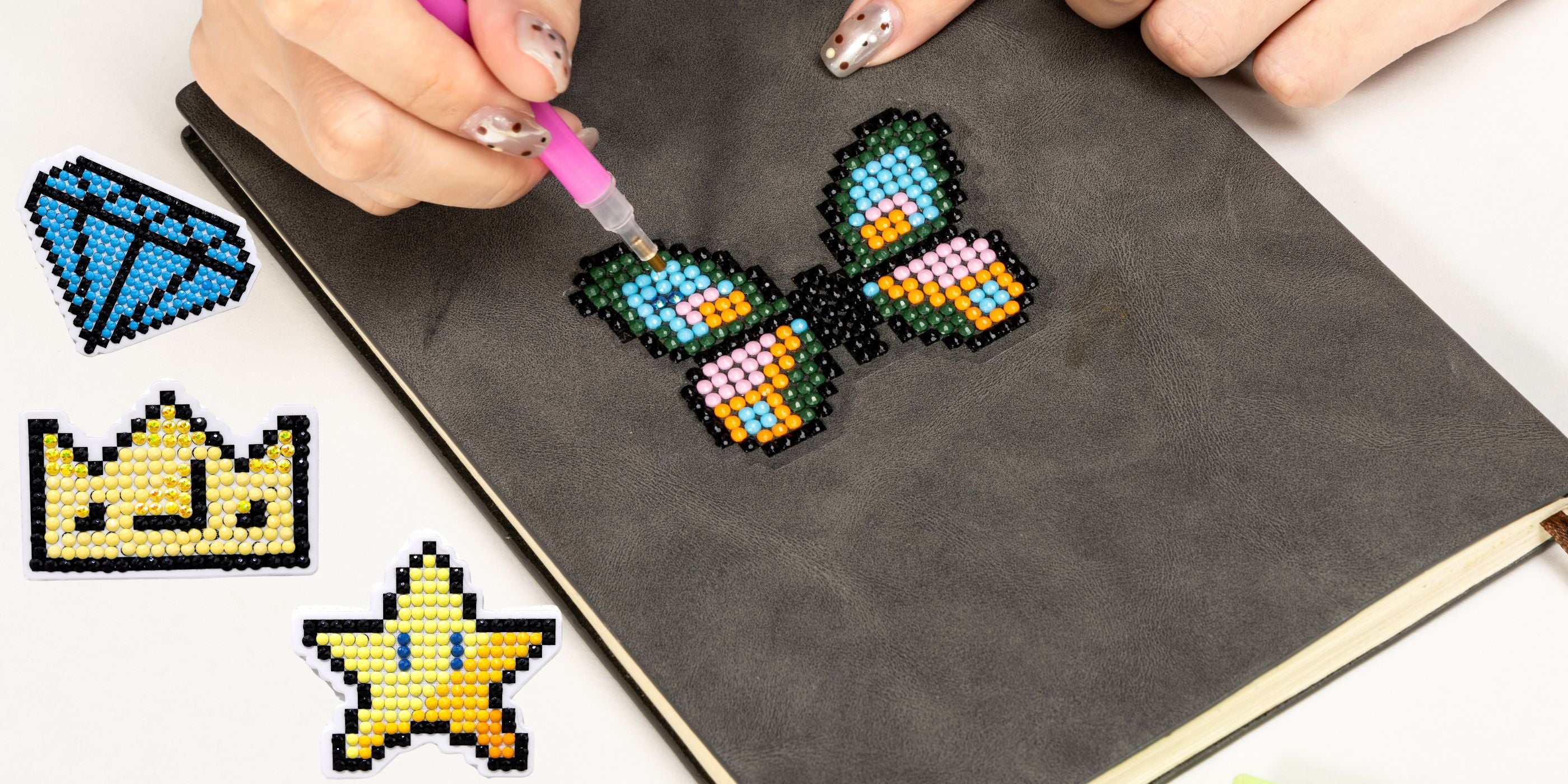 Unleash your creativity with our Diamond Painting Sticker Set. This daimond painting kit includes 38 exciting projects, each a mini masterpiece. Transform your phone case, laptop, and more with sparkling, pre-printed designs. Experience the magic of diamond painting on a smaller scale, and let your imagination shine!