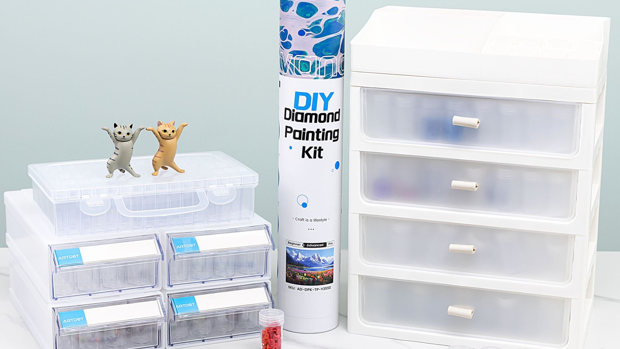 ARTDOT storage system features drawers & a top rack for organizing and classifying all your beads and diamond painting tools easily while remaining extremely portable and perfect for getting diamond art done anywhere.